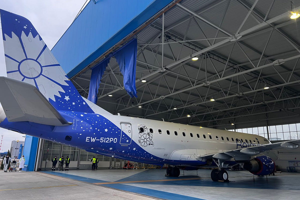Авиакомпания Belavia оформила один из своих самолетов в космическую ливрею. Теперь на Embraer красуются не только васильки, но и звезды с космонавтами.