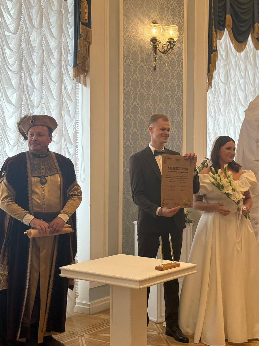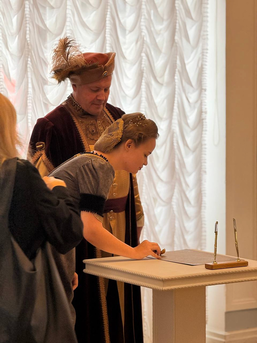 К слову, нотка театральности в моменте присутствует: помочь обменяться кольцами и вручить уникальное свидетельство могут представители эпохи Радзивиллов.