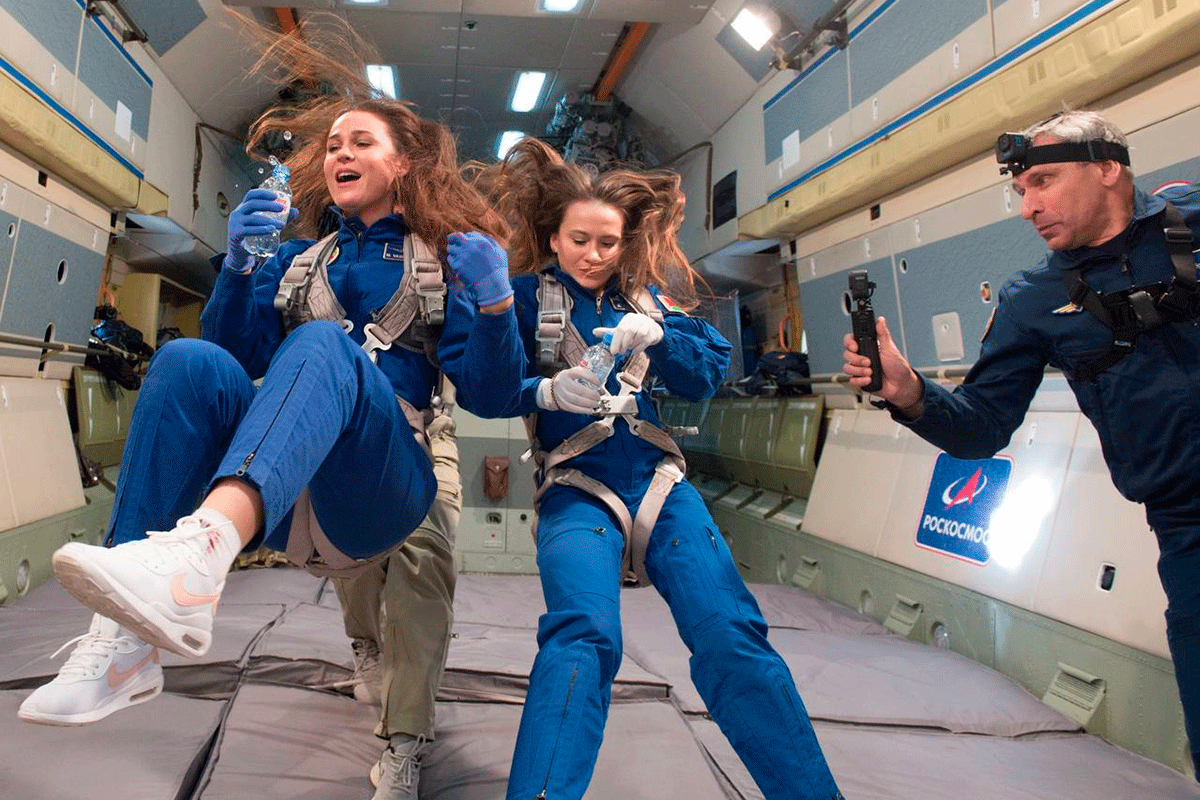 Космонавтки выполнили два цикла тренировок. Первый полет на самолете-лаборатории Ил-76МДК был ознакомительным, сообщает Роскосмос в Telegram-канале.