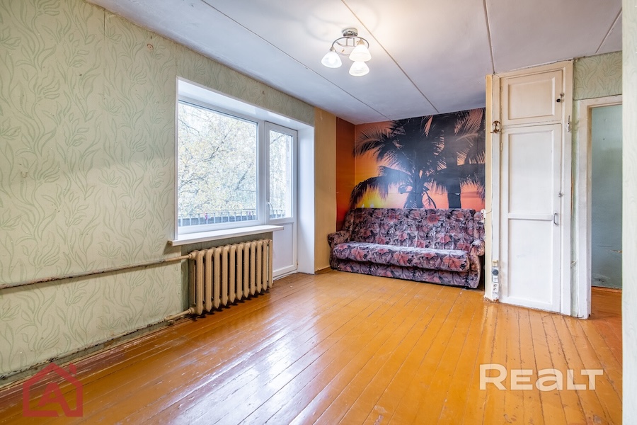 Продается двухкомнатная квартира на втором этаже по ул. Берута, 4/3. Четырехэтажный дом стоит во дворах возле станции метро "Пушкинская". Его возвели в 1967 году. Площадь жилья – 38,1 м², в том числе кухни – 6,2 м².