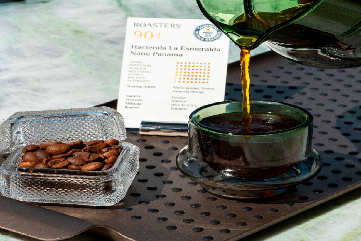 Стоит ли говорить, что для приготовления использовался один из самых редких видов кофейных зерен – Hacienda La Esmeralda из Панамы, а также арабика сорта Geisha.
