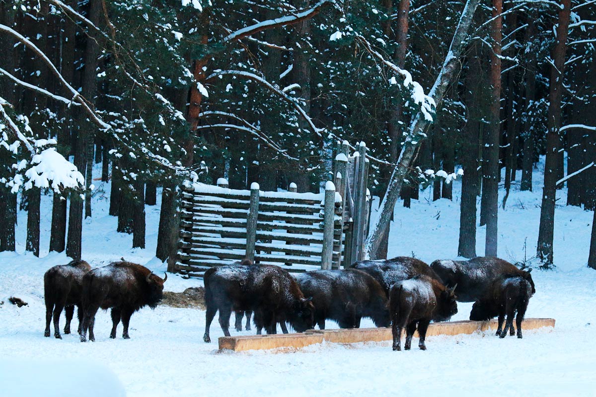 В Беловежской пуще уже начали подкармливать диких животных, потому что им трудно добывать еду под снегом.