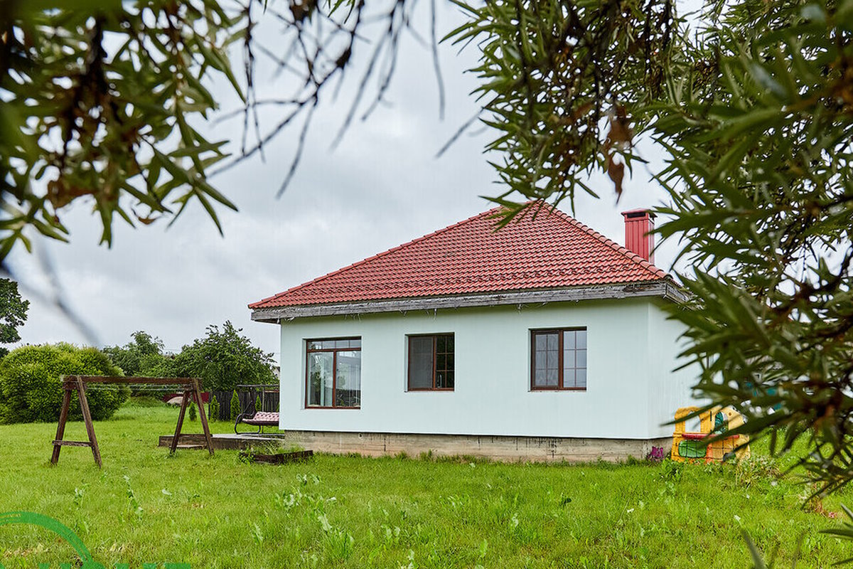 Здесь на продажу выставили деревянный дом 2022 года постройки. Стены обработаны качественной пропиткой. Есть окна из ламинированного ПВХ, на крыше – гибкая черепица.