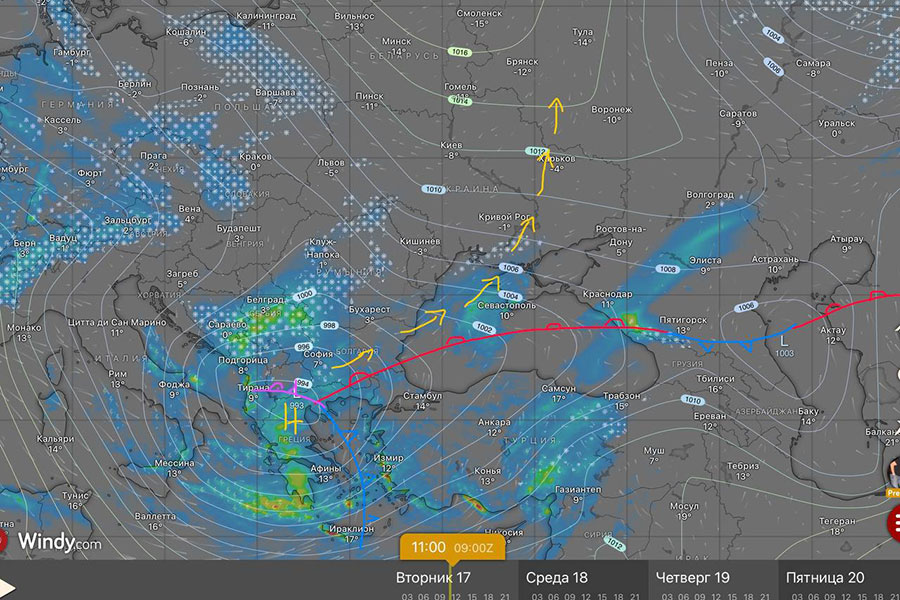 На Беларусь идет циклон с Адриатического моря.