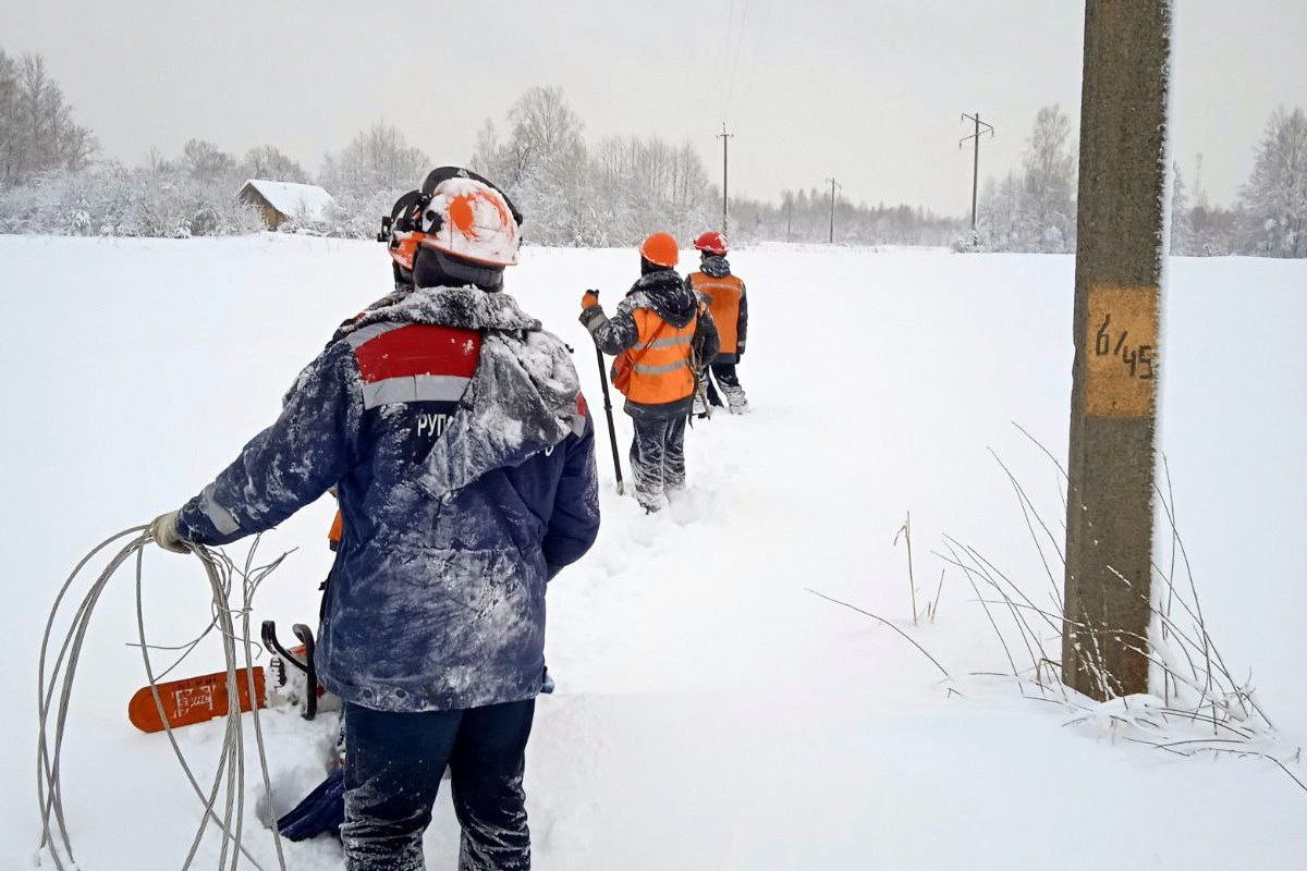 Работу энергетикам усложняют упавшие на дорогах и просеках деревья, которые мешают быстро добраться спецтехнике к местам повреждений.