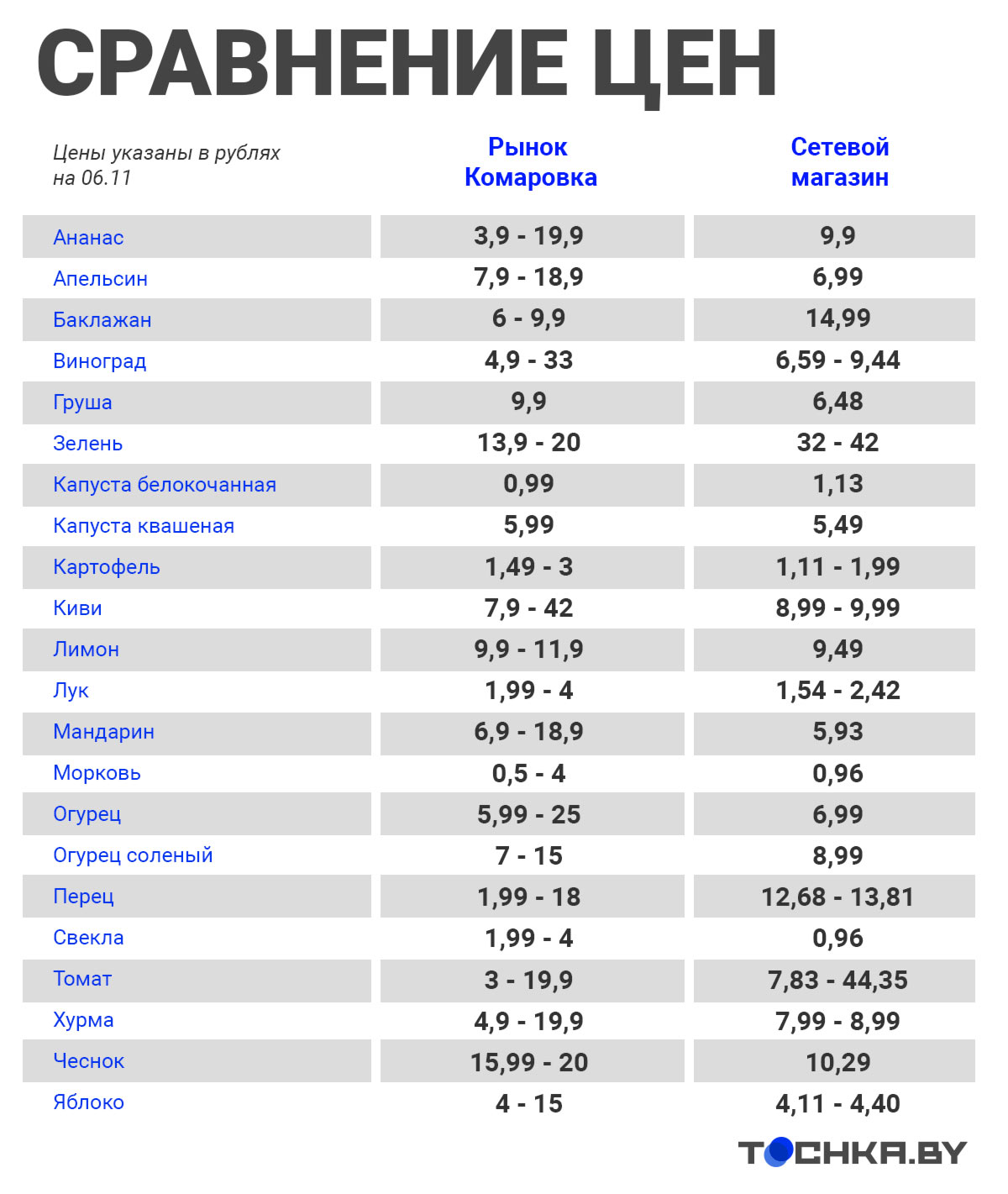 Напомним, ранее Tochka.by проводила закупочную битву между рынком и ежедневной сезонной ярмаркой. Ее итоги можно узнать здесь.