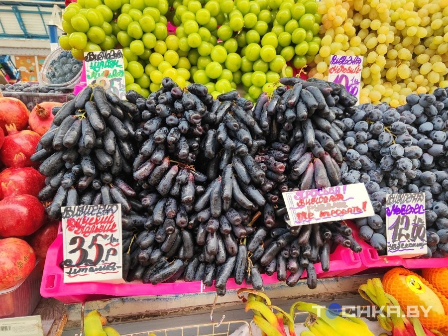 Самый дешевый виноград на Комаровке обойдется от Br4,9 за кило, в магазине – от Br6,59. Яркая хурма в рынке стоит от Br4,9, а у сетевых конкурентов почти в два раза дороже – от Br7,99.