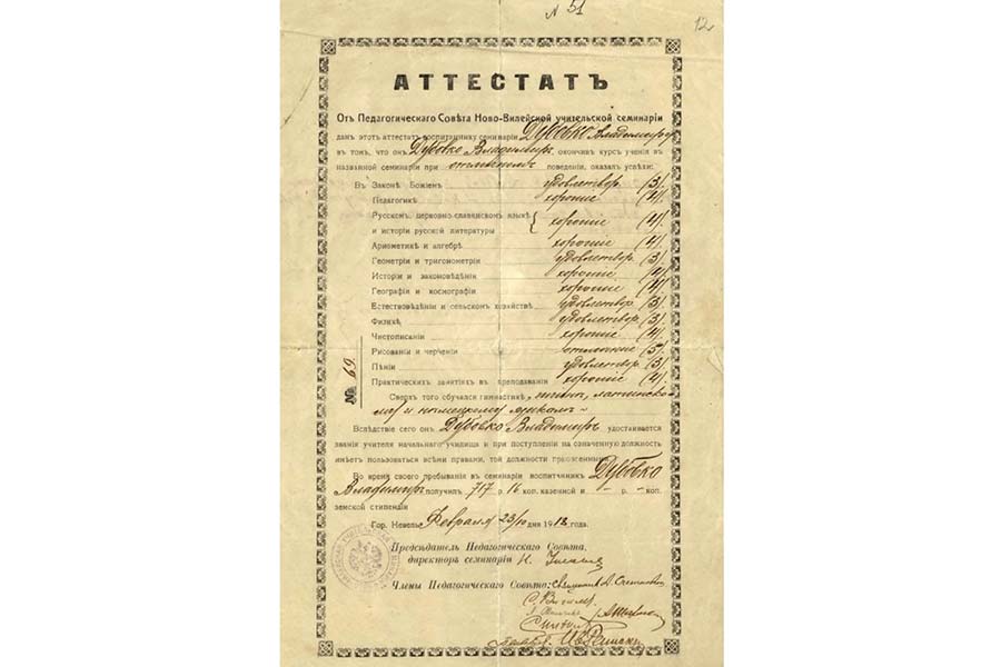 Воспоминания куда приятнее сохранились о Мядельском двухгодичном училище и Ново-Вилейской учительской семинарии. В 1918 году завершил семинарскую учебу и поступил на историко-филологический факультет Московского университета. Однако нужда заставила будущего поэта оставить учебу и поехать работать учителем на Тульщину.