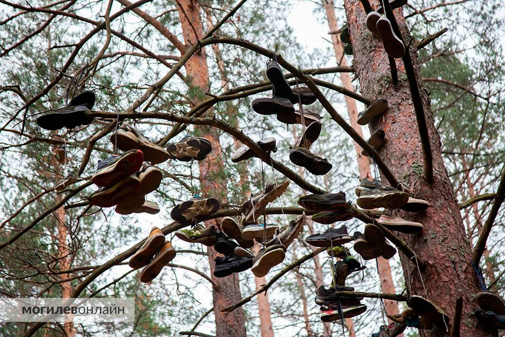 Под Кличевом грибники нашли сосну, полностью увешанную обувью.