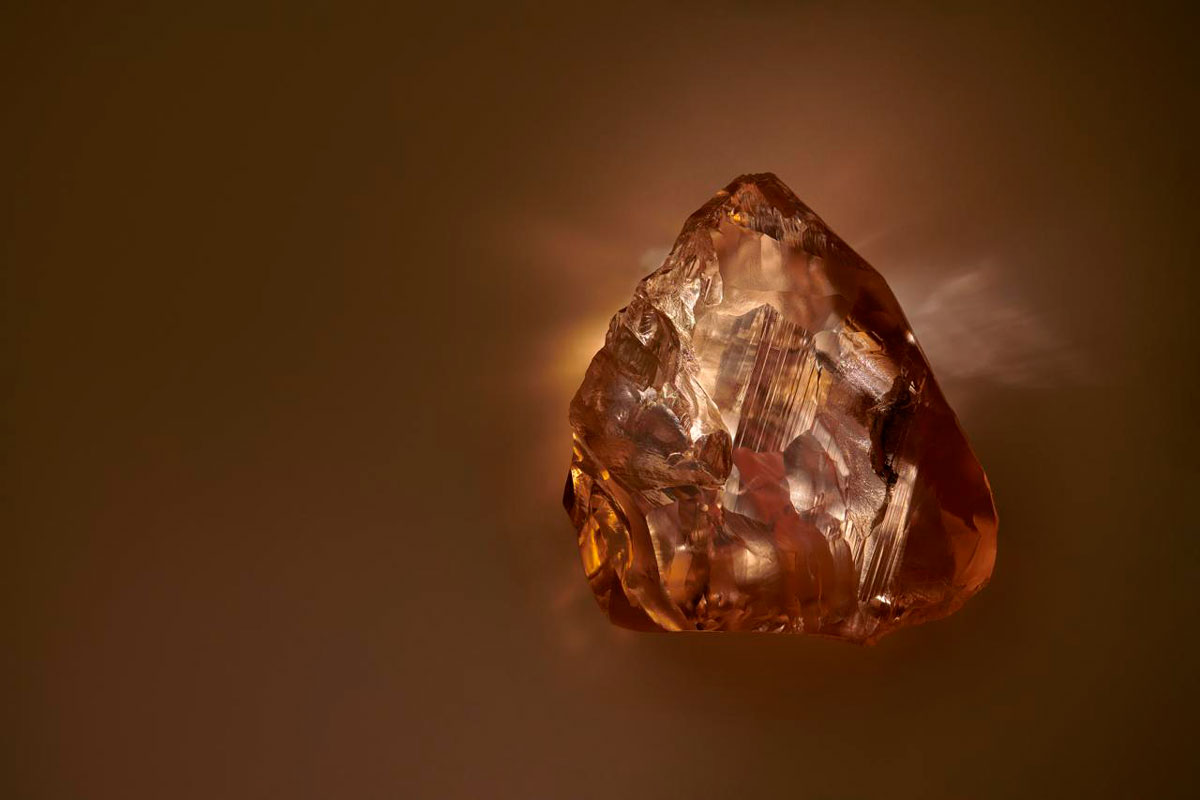 Его назвали "Новое Солнце". Исходный камень также был особенным – золотисто-медовым, массой около 200 карат, добыт на северном россыпном месторождении Эбелях.