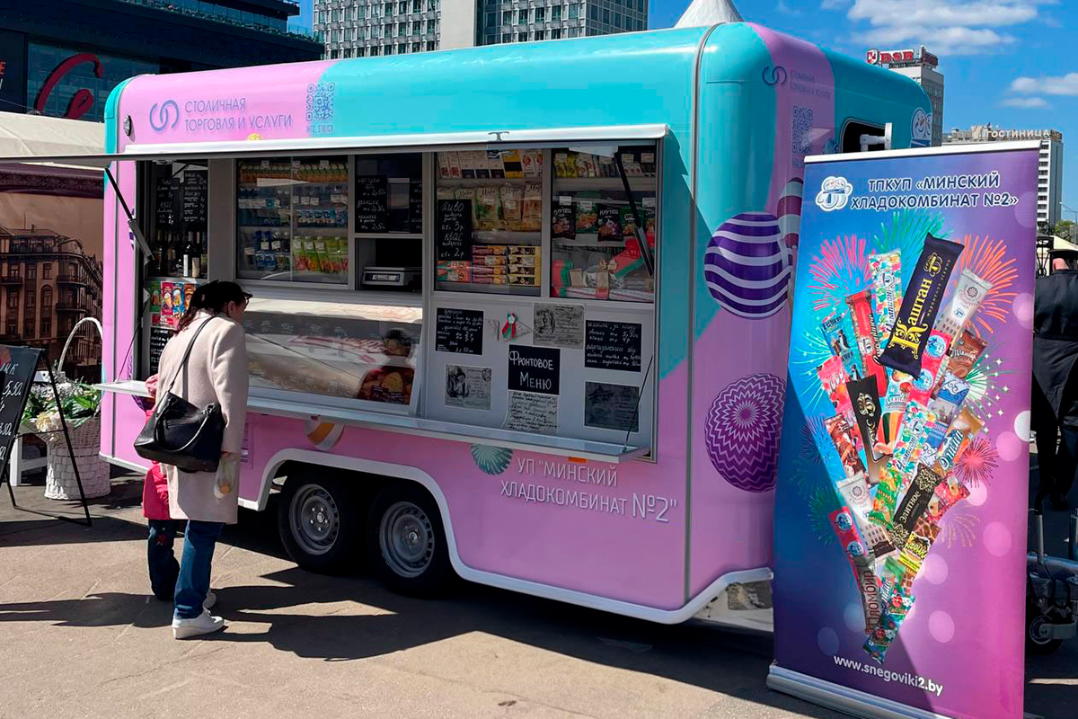 Внутреннее наполнение этих прицепов, в принципе, стандартное: гардеробный шкаф с дверью для персонала, автономное водоснабжение, включающее в себя тумбу с раковиной, погружной насос, контактный кран, две канистры по 20 литров, блок питания 12В. Все оборудование – отечественное. Холодильные витрины изготавливает фирма "МИКАМ", расположенная в Дубовлянах.