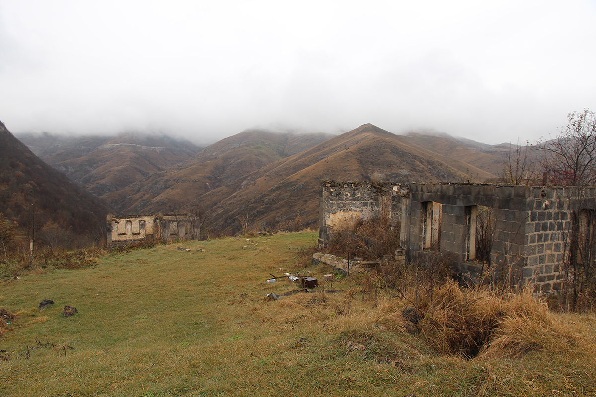 Азербайджану Худованг вернулся с уничтоженным селом у подножья храма. Руины невозможно не увидеть, взирая на долину из монастыря.