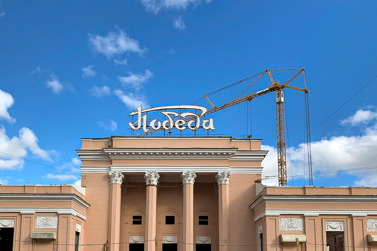 Сейчас здание обнесено лесами: они смонтированы по главному фасаду и левой стороне кинотеатра. Вскоре к работе приступят реставраторы.