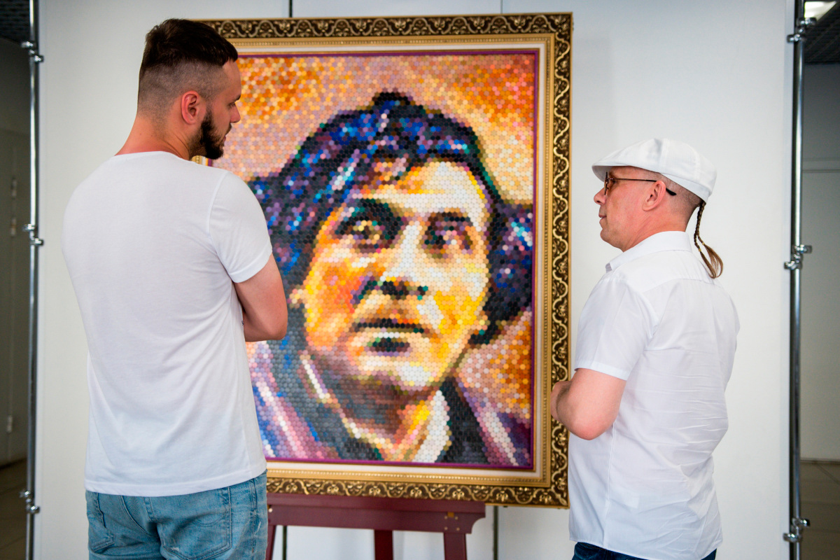 Смотреть картины художника лучше издалека. Россыпь расписанных монет плавно превращается в реалистичный портрет.