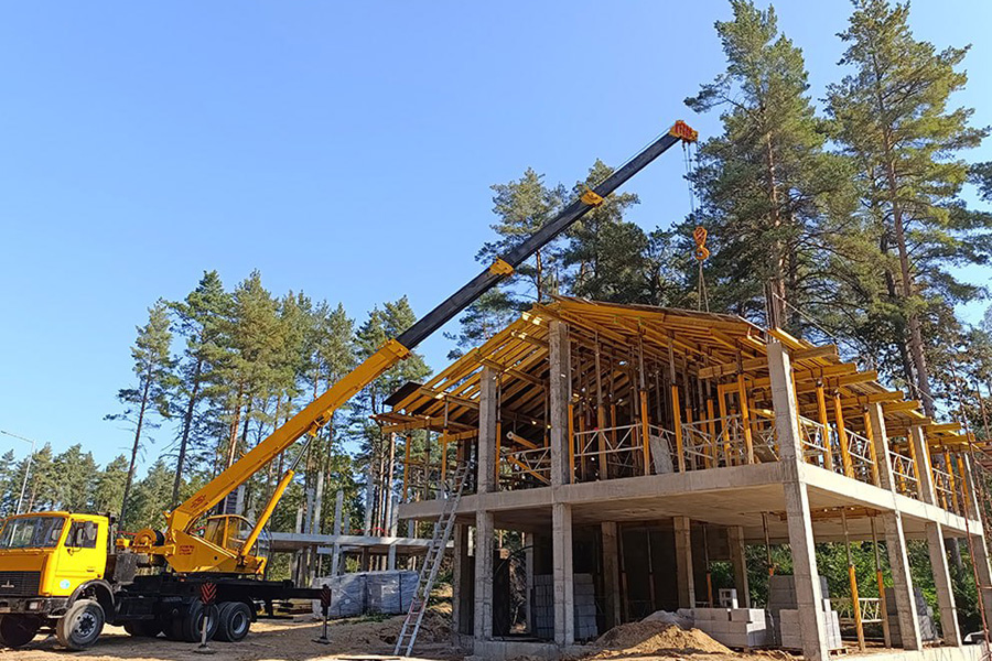 "Сейчас ведутся монолитные работы по каркасам, устройству стен и перегородок из керамзитобетона, установке стропильных систем и кровли – она из профилей ЛСТК. В домах, где завершены кладочные работы, начались штукатурные. На очереди – окна", – сообщили в "Минскстрое".