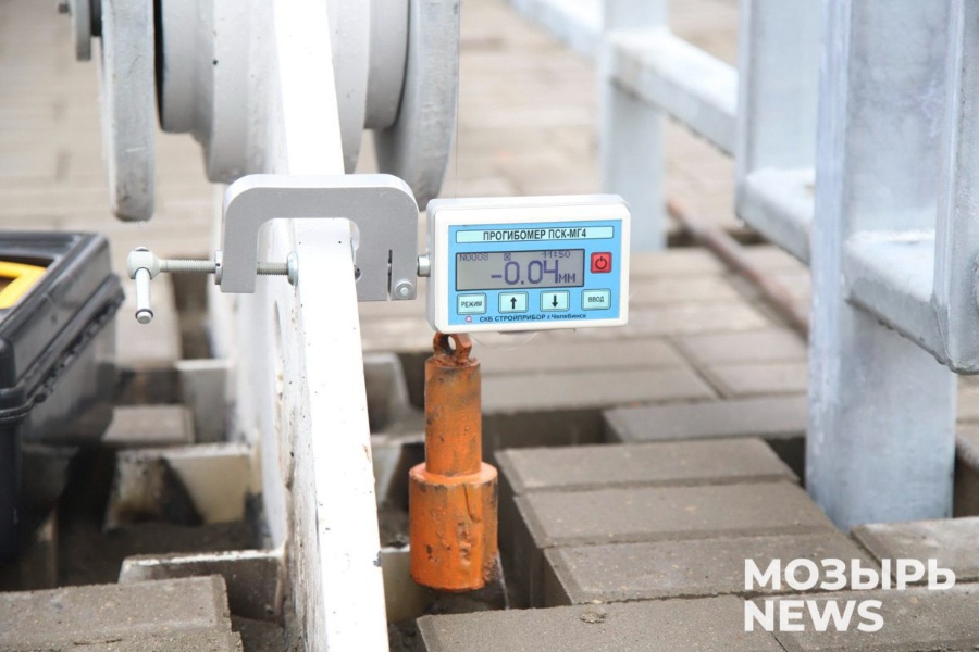 Так, специалисты организации "БелдорНИИ" заняты проверкой прочности реконструированного моста.