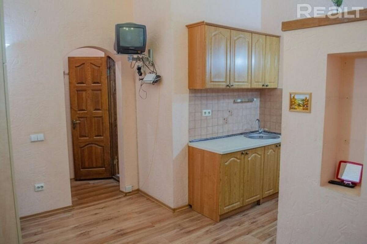 В Минске на улице Интернациональной в доме 1917 года постройки продается очень маленькая квартира. Объявление размещено на сайте Realt.