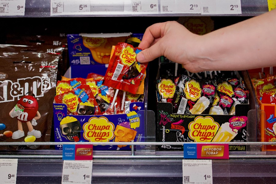 Конечно, походы по магазинам с детьми всегда заканчиваются покупкой какой-нибудь "вкусняшки". На этот раз одному из ребят приглянулись чупа-чупсы на полке с игровыми товарами. И мама взяла конфеты на всю семью.