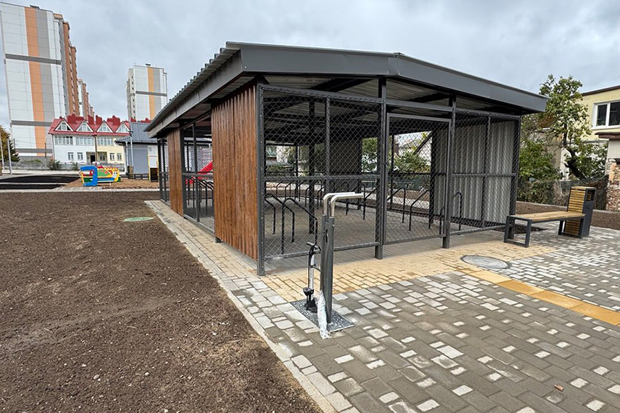 Рядом с велобоксом дома №5 даже уличную станцию для ремонта и обслуживания велосипедов установили. Здесь можно и колеса подкачать, и давление в камерах проверить.