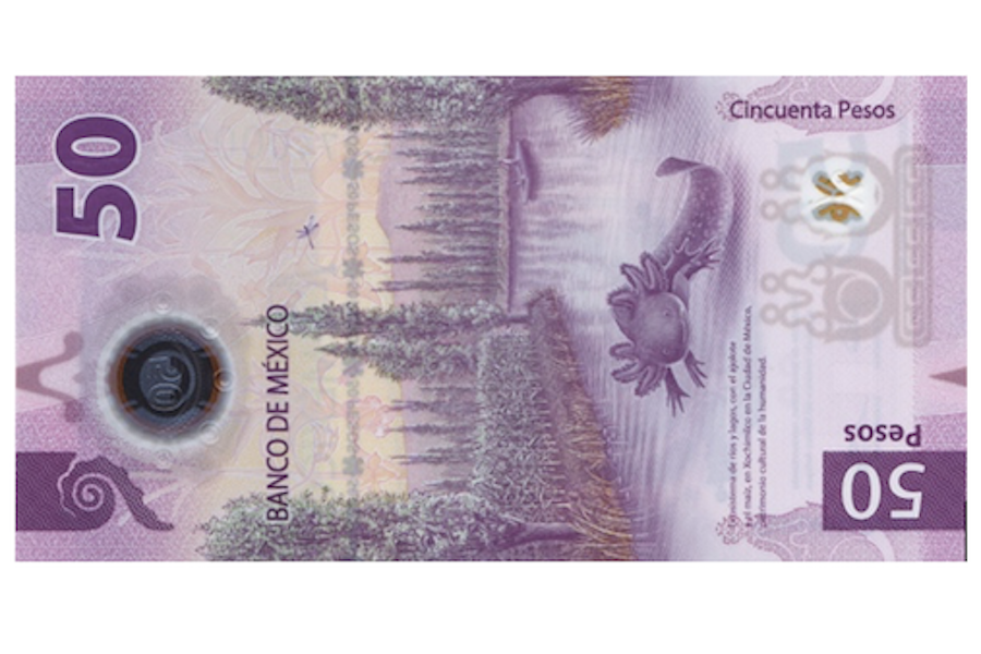 Банкнота с аксолотлем поступила в обращение в 2021 году. Она сразу же произвела фурор, получив звание "Банкнота года" от Международного общества банкнот.