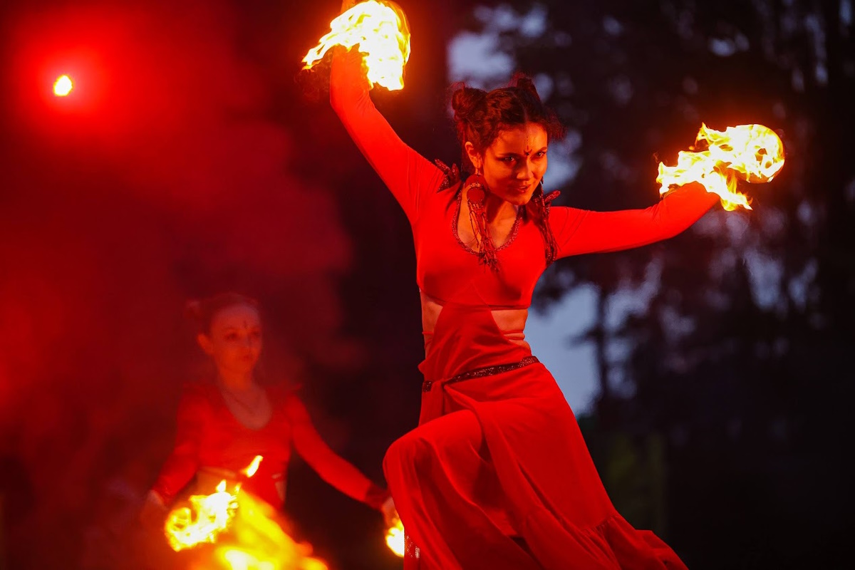 Самым же захватывающим зрелищем стало фаер-шоу, которое с наступлением темноты смотрелось невероятно эффектно. На суд зрителя представили множество номеров и техник исполнения этого сложного искусства.