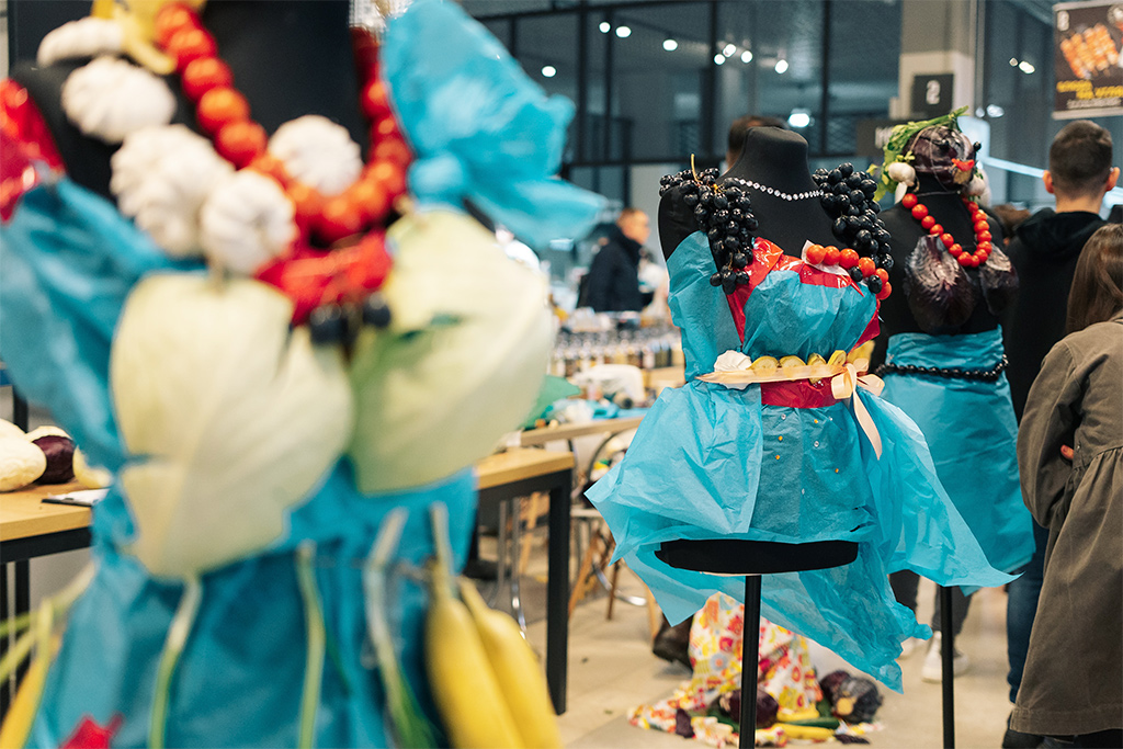 В торговом комплексе "Валерьяново" самые креативные посетители выясняли в честном поединке, кто из них соберет самый красивый съедобный наряд.