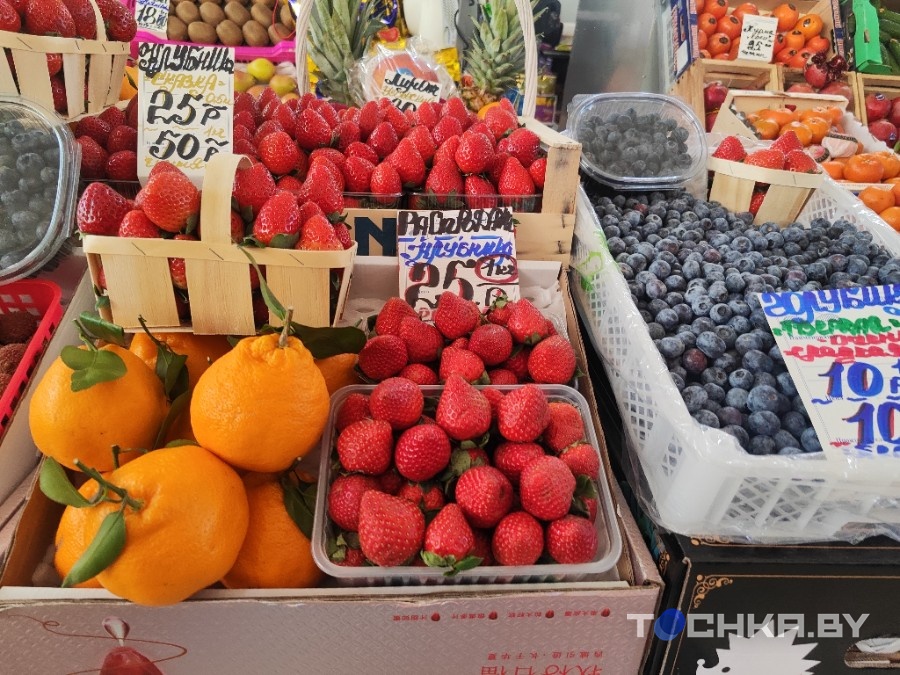 Фруктов, конечно, стало поменьше, чем перед новогодними праздниками. Однако выбор все-таки имеется. За некоторыми прилавками торгуют даже ягодами. Есть персики, арбузы, клубника, черешня, голубика.