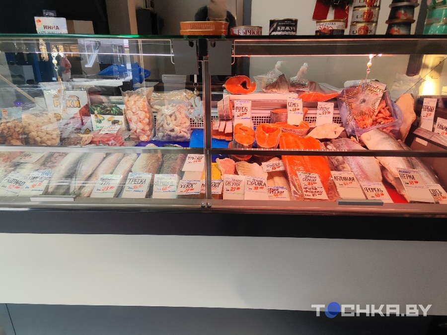 А вот в рыбном отделе выбор огромный – мороженой рыбы полно. От простой скумбрии и хека до шикарного осетра, нерки и различной икры.