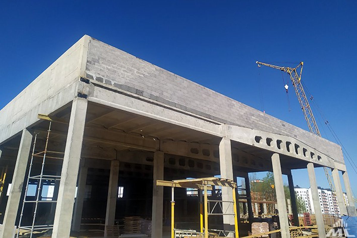 Специалисты в настоящее время сосредоточены на второй части здания, где разместятся административные помещения и раздевалки. Для завершения каркаса будет использовано 320 м3 бетона.
