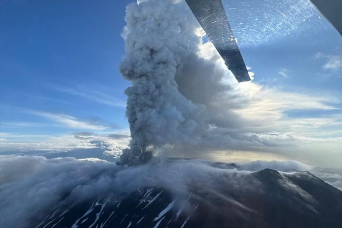 Также отмечается, что шлейф растянулся на 75 км и может повлиять на полеты самолетов.