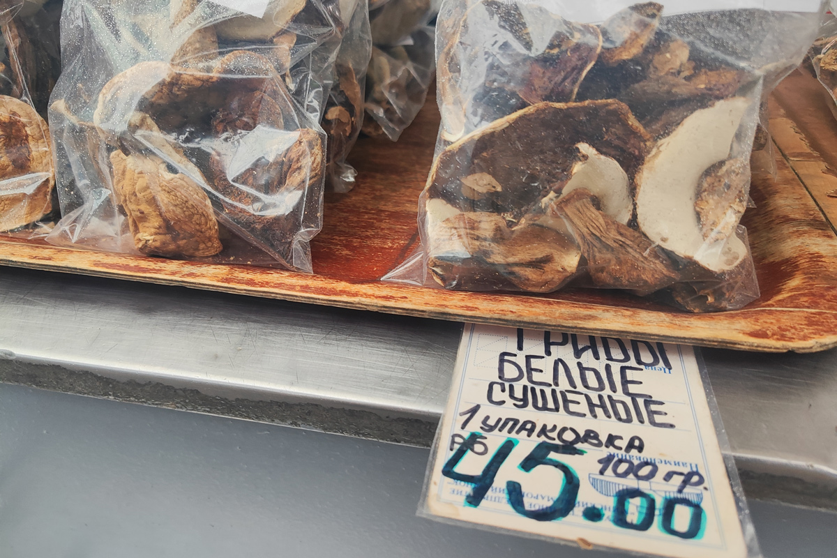 Мы поинтересовались, почему установлена такая цена. Продавец нехотя объяснила, что сушеные грибы, по ее словам, уменьшаются в 10 раз. Поэтому столько и стоят.