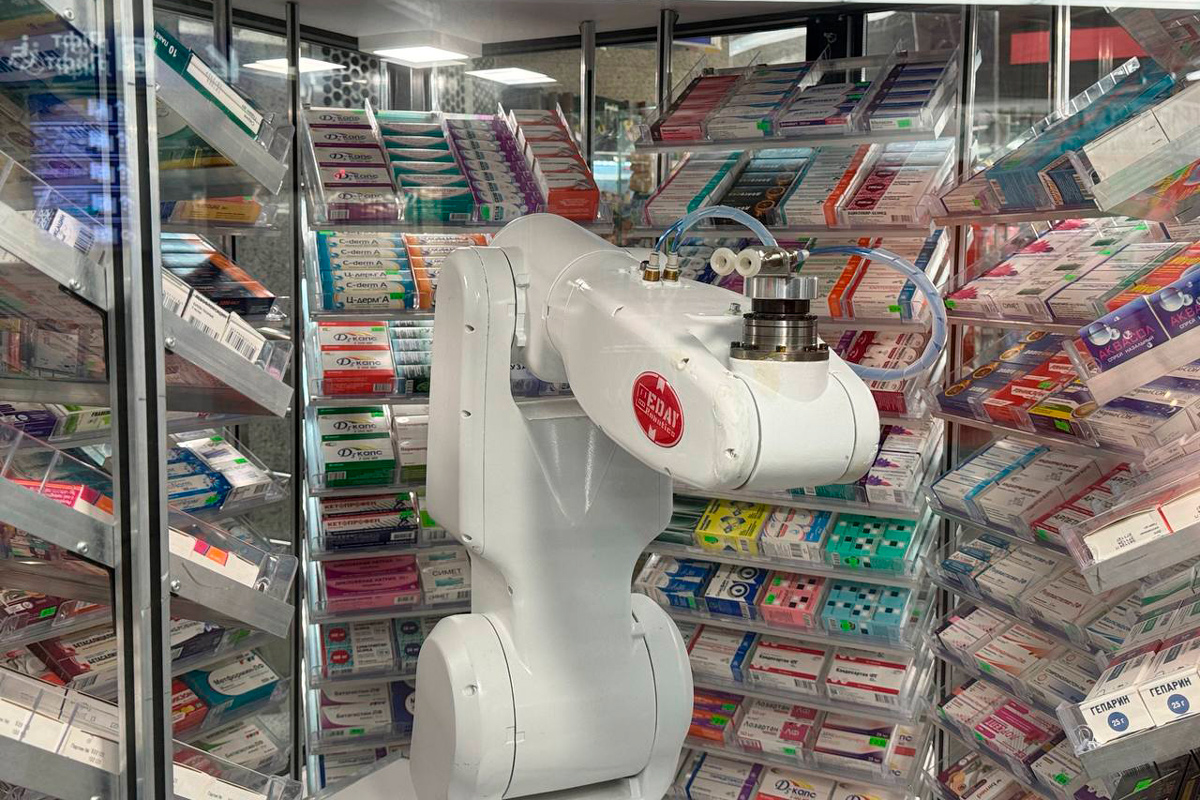 Вместо фармацевта – робот, который самостоятельно выбирает нужный препарат и передает его в окошко.