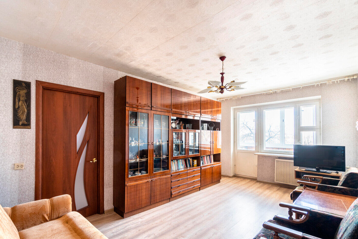 Эту двухкомнатную квартиру продают за $50 500, по $1104 за квадратный метр. Здесь 45,7 квадратов площади и не современный, но аккуратный ремонт с ламинатом, новой сантехникой и входной дверью. Дом 1967 года, где уже был капремонт с утеплением фасада, заменой труб и электрики. Находится он в глубине района в паре минут от автобусной остановки.