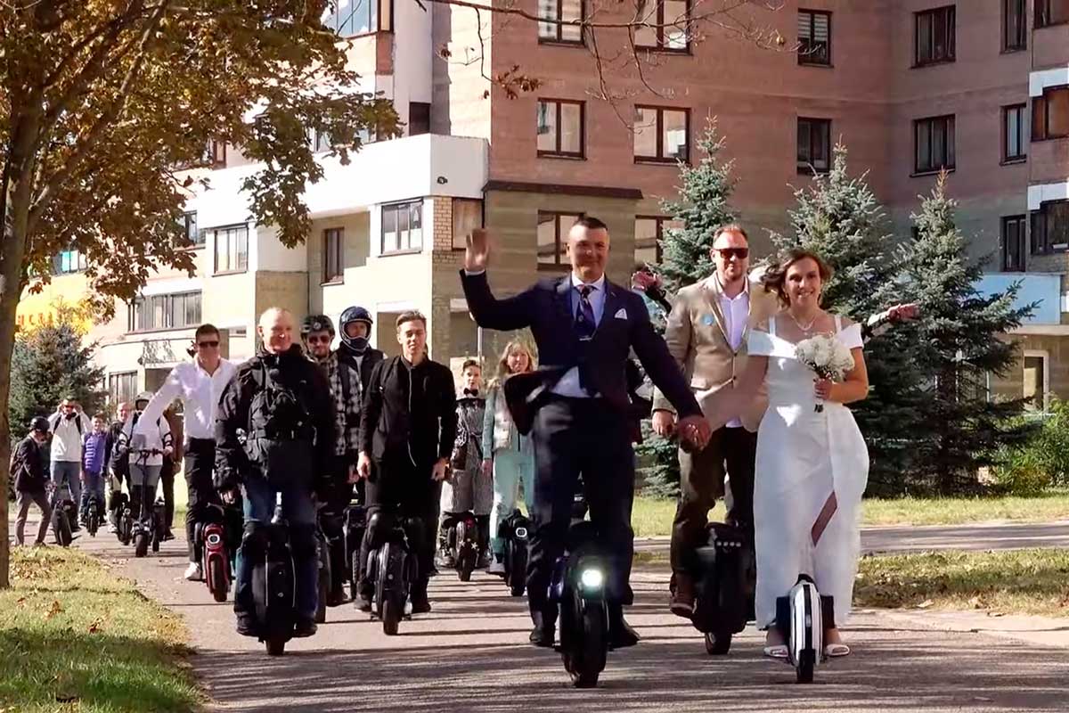 Впервые в Минске прошла свадьба на моноколесах. Необычный кортеж наблюдали жители Советского районе, сообщают "Минск-Новости".