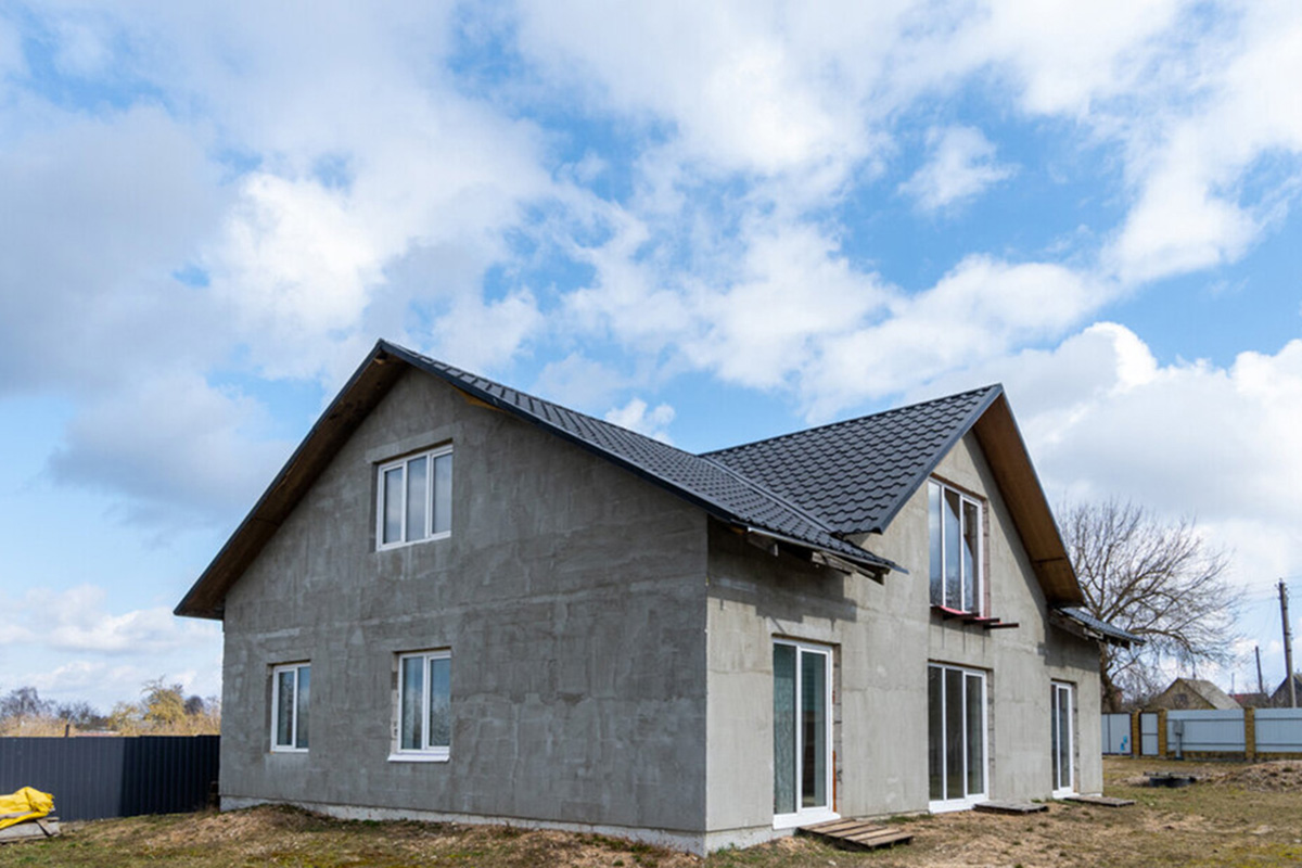 Дом возведен в 2024 году. В объявлении говорится, что строили для себя: перекрытия железобетонные, стены из газосиликата, на крыше – металлочерепица.