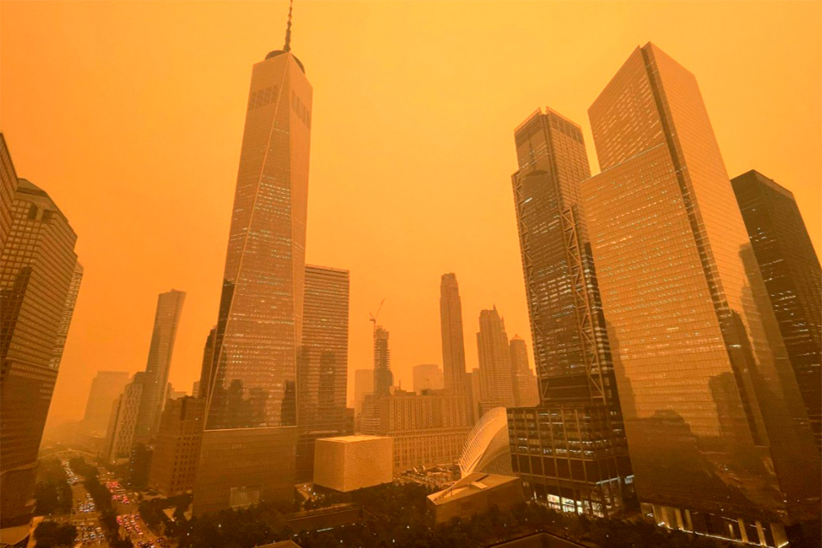 New York City is covered in smog because of the Canadian wildfires.