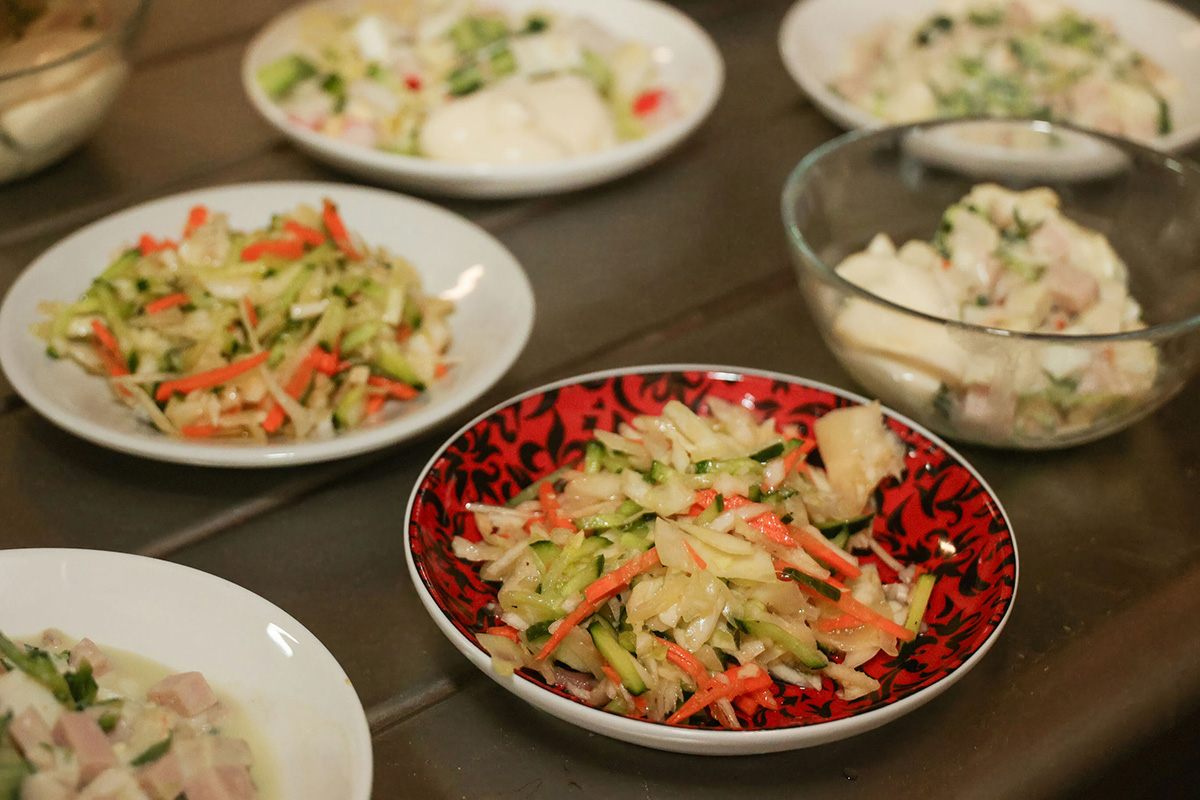 Есть порядка девяти видов горячего, и по одному гарниру и супу.