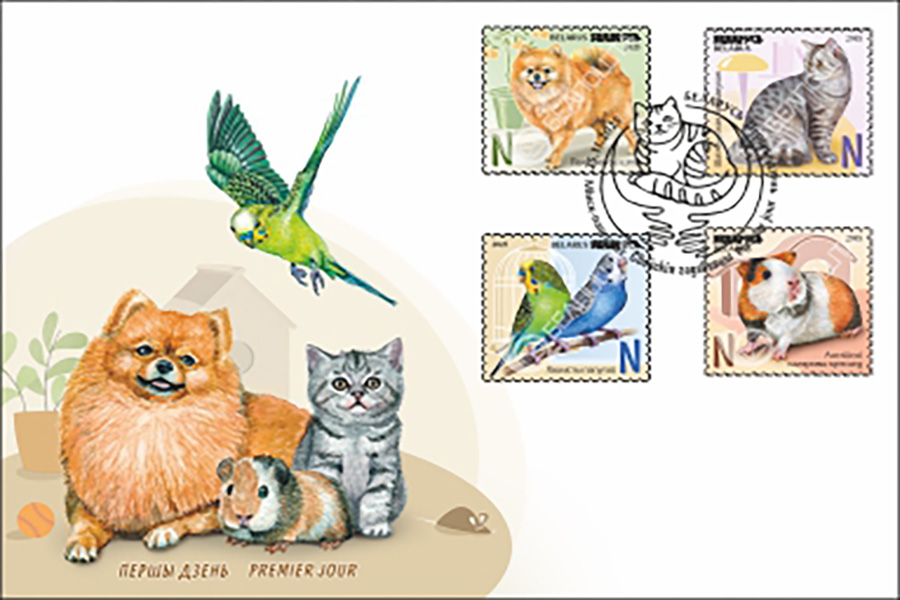 На новых марках решили изобразить домашних питомцев.