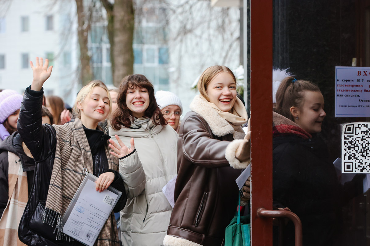 В субботу, 28 января, по всей Беларуси проходит репетиционный ЦЭ. Tochka.by наблюдала за тем, как начинался экзамен у входа в корпуса БГУ. Внутрь представителей СМИ не пустили.