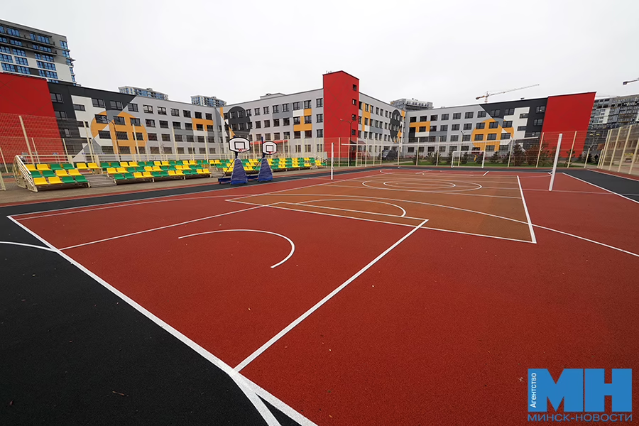 На территории школы оборудована большая спортивная зона с огороженными полями для игры в стритбол, волейбол, мини-футбол, большой теннис, передвижными баскетбольными площадками.
