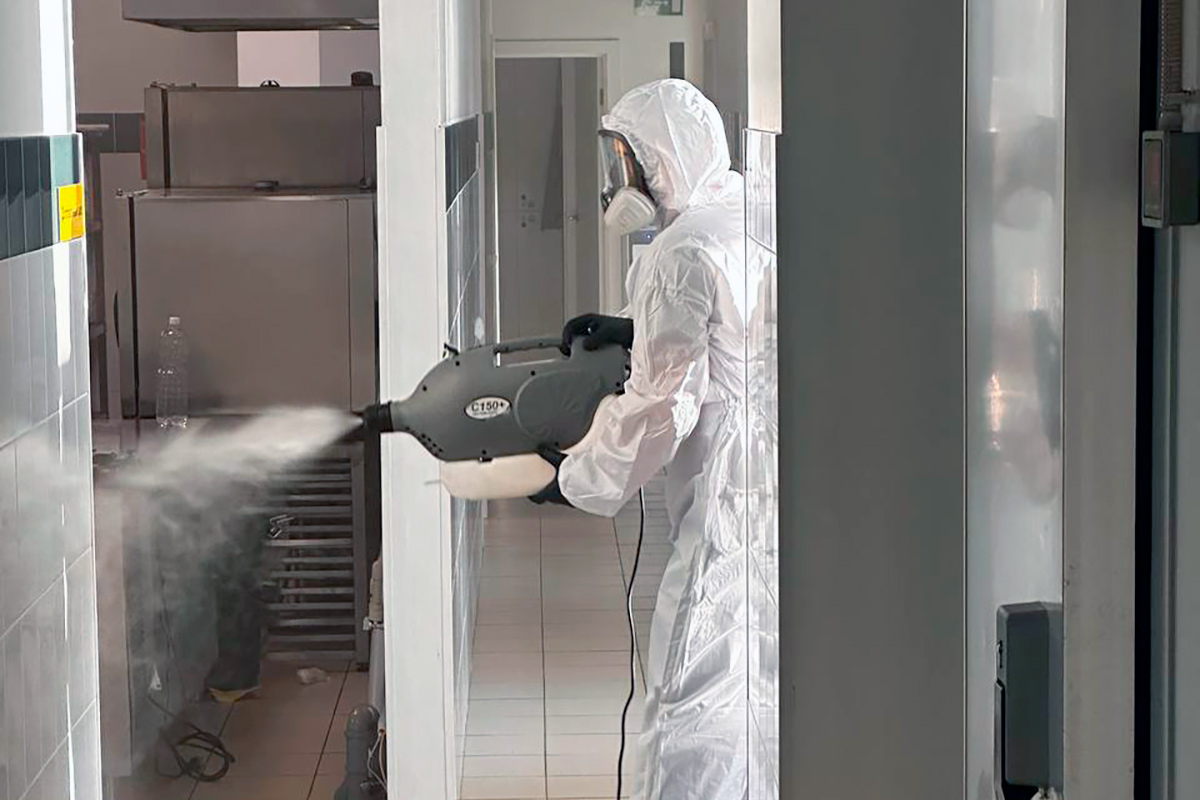 В день приезда специалист исследует все проблемные зоны. И в полной экипировке воздействует на насекомых методом холодного тумана – мелкого распыления под давлением специальных препаратов. Помещения обрабатываются полностью: от пола до потолка.