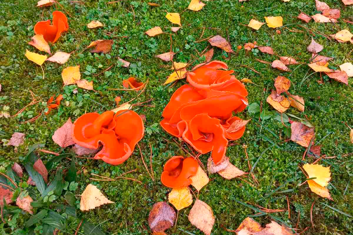 В Беловежской пуще нашли грибы, похожие на оранжевый цветок. Интересно, что обнаружили их не глубоко в лесу, а около гостиничного комплекса.