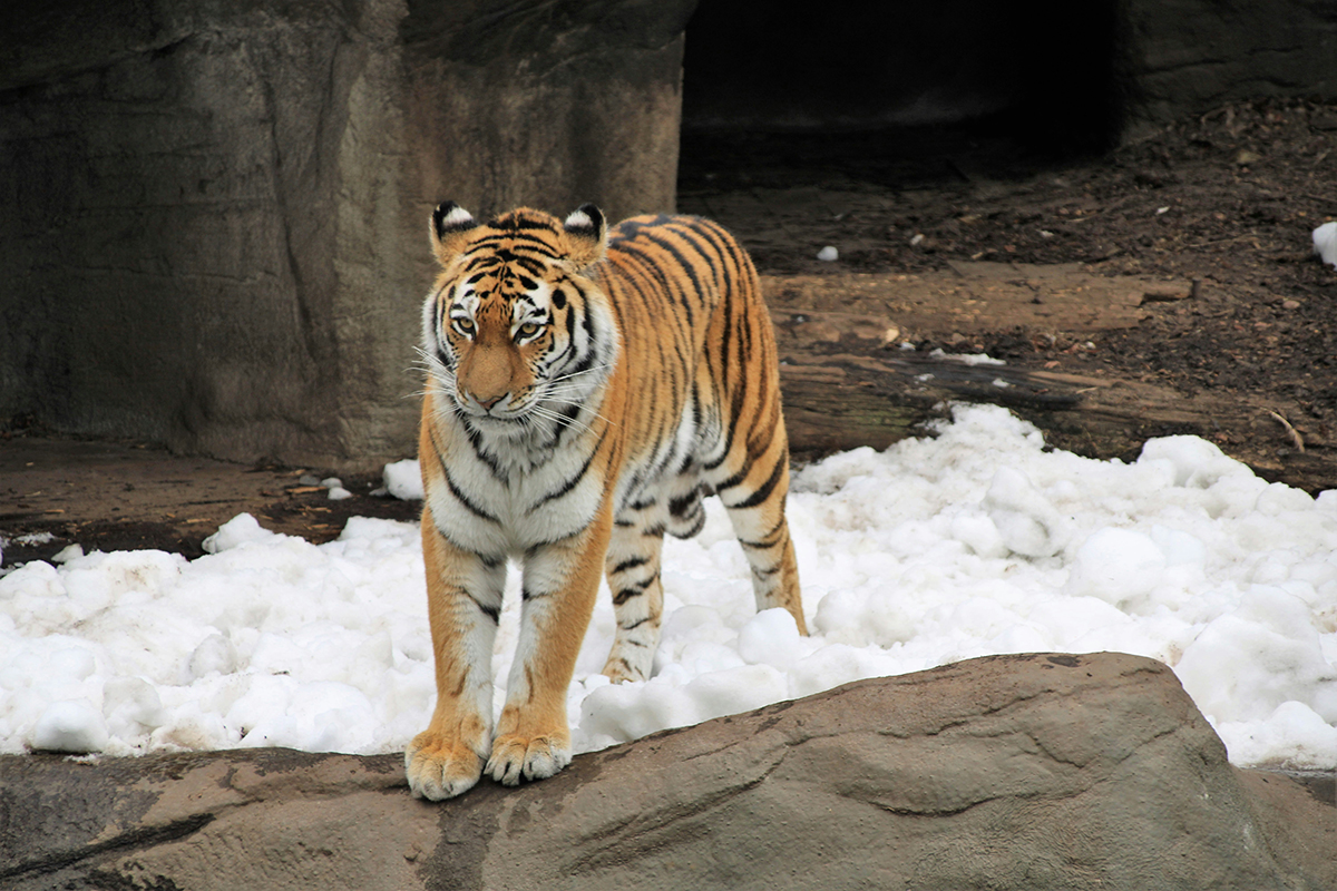 Львы, тигры, леопарды, пумы и ягуары проводят зиму преимущественно в тепле. А если морозы ослабевают, этих "крупных кошек" ненадолго выпускают на свежий воздух, рассказала представитель зоопарка.