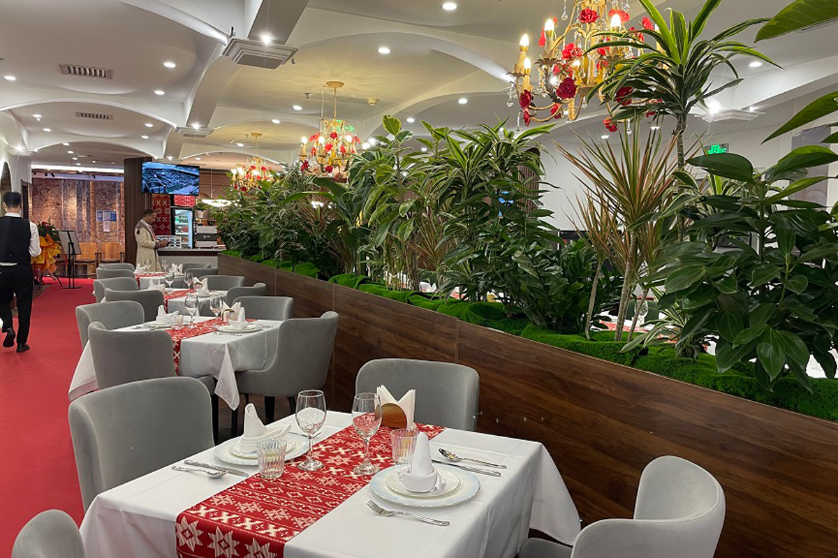 Какие именно блюда будут подавать в заведении – не уточняется. Пока что можно лишь рассмотреть интерьер ресторана. К слову, он довольно сдержанный, а главным акцентом стал национальный белорусский орнамент. В тон ему пол выстлан красным ковролином. В интерьере много зеленых растений и дерева. Еще одна интересная деталь: столы сервируют "гранеными" стаканами.