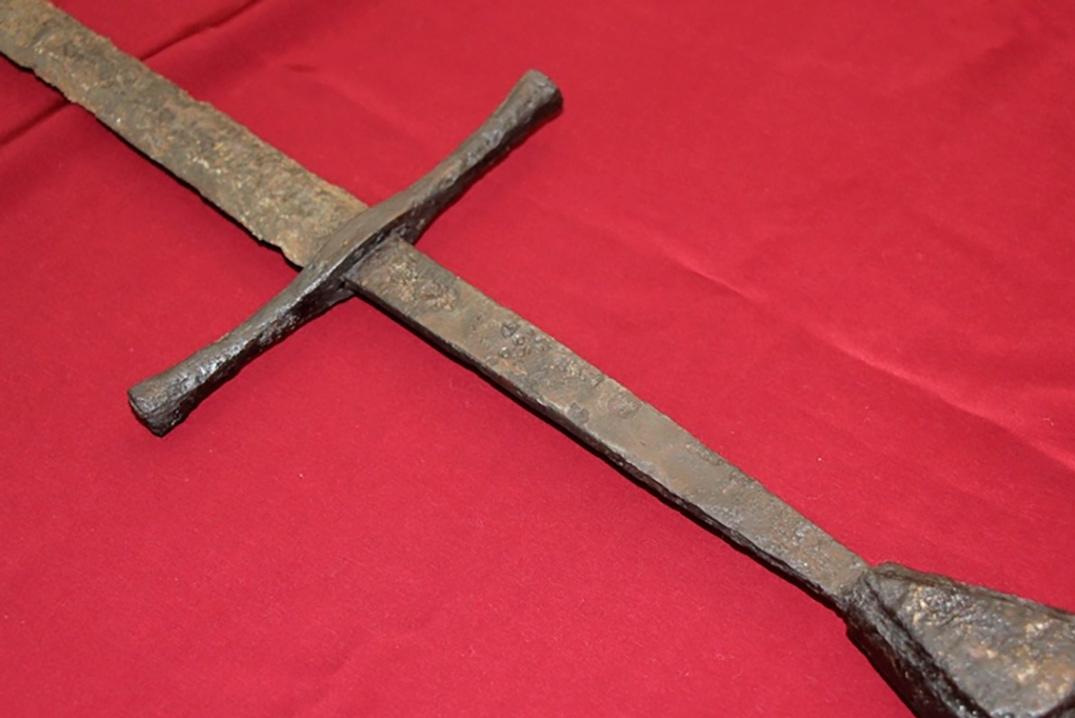 "Находка очень интересная, раньше у нас таких не было. Это своеобразная печать времени. Общая длина меча 128 см, вес примерно 1,6 кг. В результате исследования химического состава меча установлено, что лезвие и гарда изготовлены из закаленной высокоуглеродной стали, а навершие – из незаконченного железа. Материалом для изготовления инкрустации стала двухкомпонентная латунь без дополнительных примесей", – оценил находку реставратор Александр Волков.