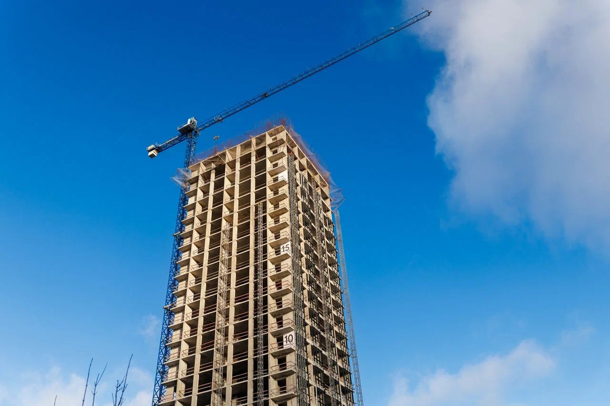 В ближайшие месяцы будет залит каркас на последних этажах, а до конца весны небоскреб "оденут" в сплошное стекло.