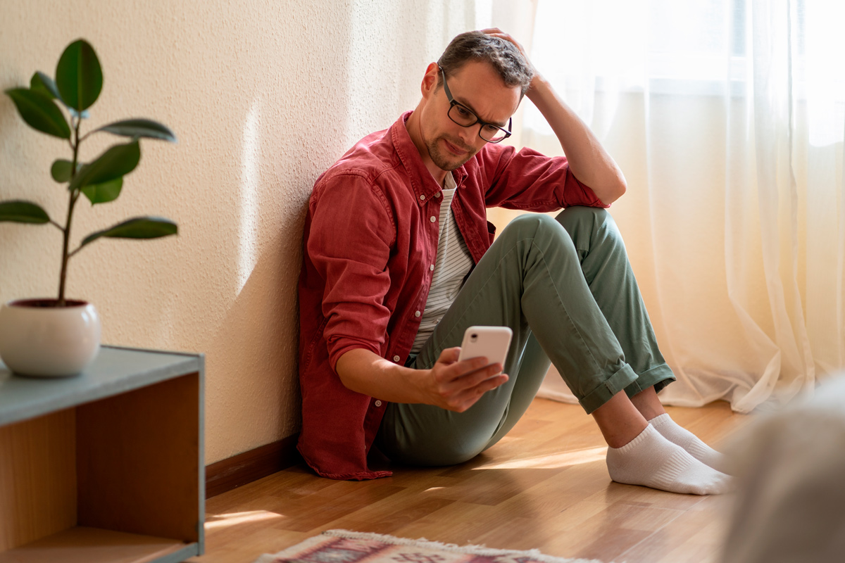 Минутный ролик напоминает старый американский фильм. Главный герой мечется в панике из-за того, что возлюбленная растоптала его телефон, а там важное голосовое сообщение.