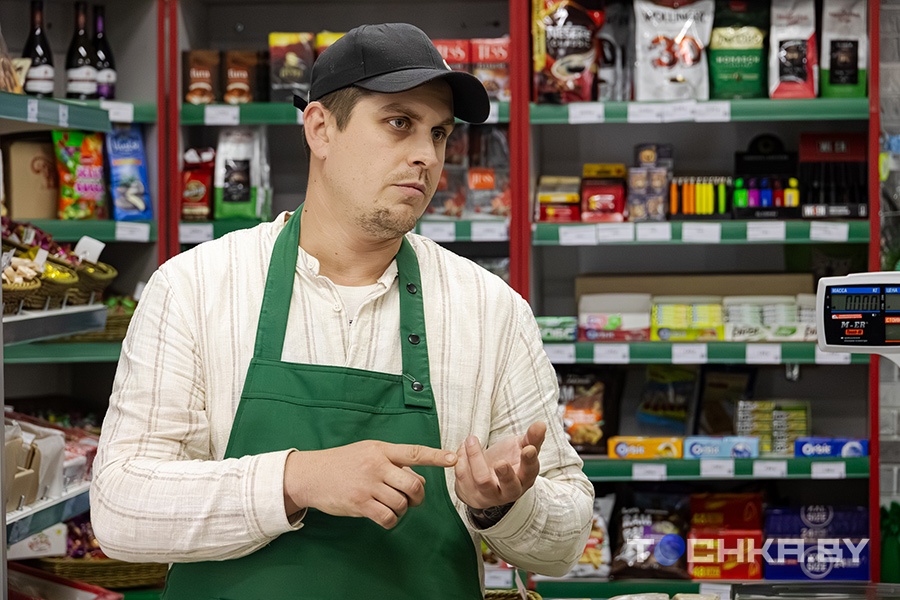 Даже в немноголюдный понедельник скучать Александру не приходится. Когда покупателей мало, можно заняться учетом товара.