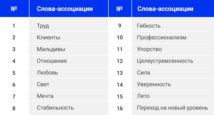 Разберем на примере первичный запрос: "Хочу заработать миллион долларов". Далее нужно написать 16 слов-ассоциаций к нему.