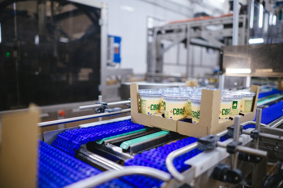 За день здесь производят около 30 тонн продукта. Для бренда "СВАЁ" предприятие выпускает сметану жирностью 20 и 26%.